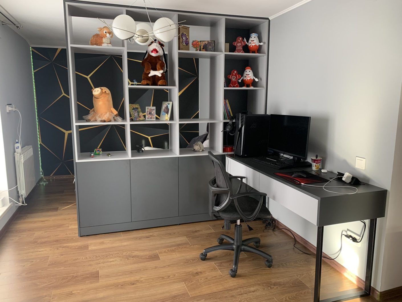 • дитячу спальню для підлітка – із просторими шафами й сучасним письмовим столом;